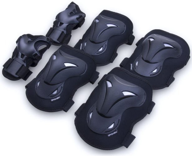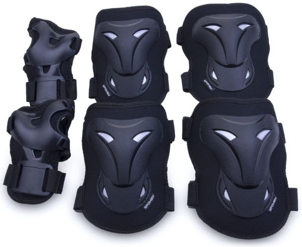 Ochraniacze POLEYN marki Spokey to model przeznaczony dla osób o wadze powyżej 50 kg. Sprzedawane są w zestawie, w skład którego wchodzą elementy chroniące kolana, łokcie oraz nadgarstki – miejsca szczególnie narażone na urazy. Ochraniacze można wykorzystywać latem do jazdy na deskorolce, rolkach czy wrotkach, a także zimą do jazdy na łyżwach.