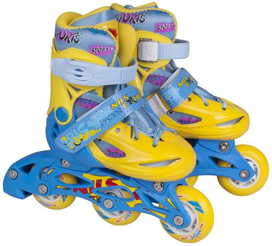 Łyżworolki z wymienną płozą renomowanej marki Nils Extreme zostały wykonane bardzo starannie z dokładnością o każdy szczegół. Produkt oferuje 3 możliwości konfiguracji. Są to: łyżwy,łyżworolki,wrotki. Jednym z atutów tego modelu jest funkcja regulacji rozmiaru buta. Dzięki niej dziecko może korzystać z ulubionej pary nawet przez kilka sezonów, a rodzice unikną wydatków związanych z wymianą sprzętu na większy rozmiar. Łyżworolki są połączeniem nowoczesnego wzornictwa z wysoką jakością wykonania. Opcja wymiennej płozy – umożliwia korzystanie przez cały rok. Zarówno montaż oraz demontaż są bardzo proste i zajmują zaledwie kilka minut. Łyżwy posiadają ostrza wykonane z najlepszej jakości stali.