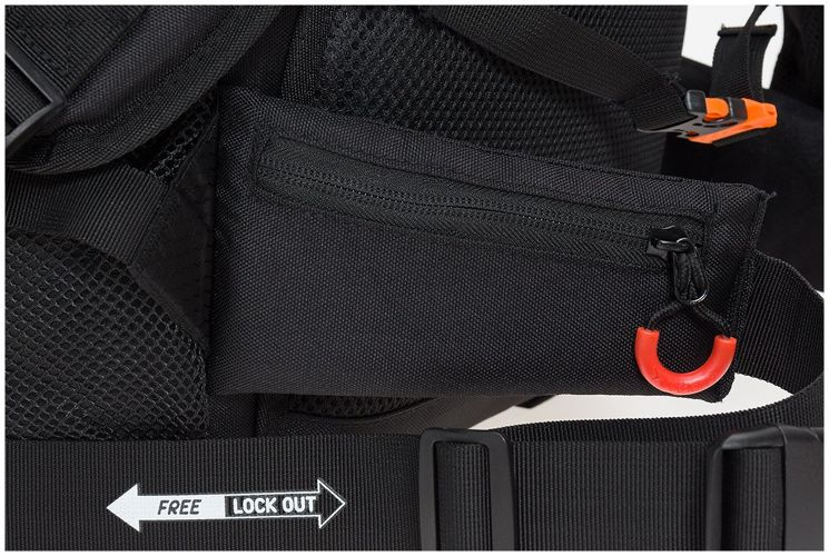 • Zintegrowany, regulowany pas biodrowy z miękkimi panelami z 2 kieszonkami,