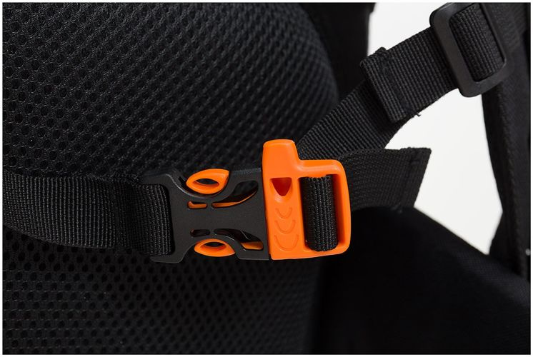 • Pasek piersiowy z płynną regulacją z gwizdkiem ratunkowym,