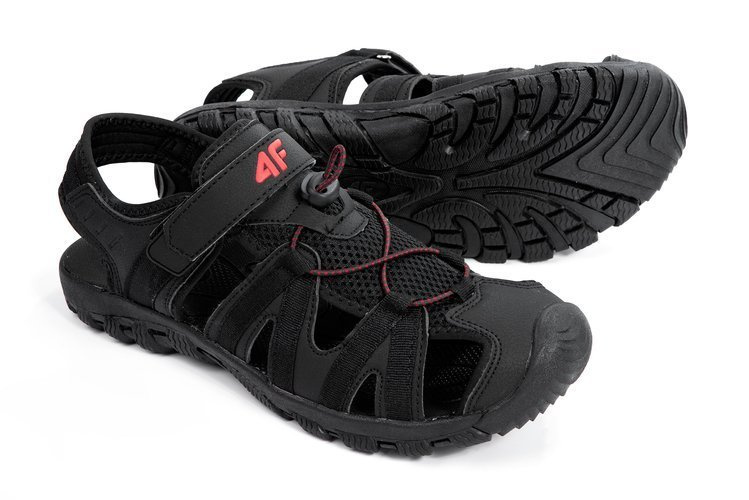 Sandały męskie marki 4F zapinane na rzep oraz ściągacz z najnowszej kolekcji wiosna/lato 2020. Wykonana z przewiewną cholewką z siatki. Produkt posiada wzmocnioną zakrytą strefę palców, która ma za zadanie chronić przed uszkodzeniami. Wkładka z miękkiej pianki EVA zwiększa komfort podczas chodzenia. Gumowa podeszwa z bieżnikiem zapewni przyczepność. Idealnie sprawdzą się podczas aktywności fizycznej, wędrówek i wycieczek w upalne dni.