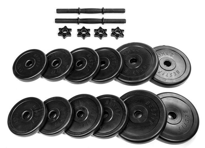 Zestaw hantli kompozytowych marki Bestif. Dzięki zastosowaniu różnych obciążeń umożliwiają dopasować wagę do indywidualnych potrzeb. Hantle wykonane z masy bitumicznej pokrytej tworzywem sztucznym- dzięki temu nie musisz bać się o uszkodzenia podłogi.