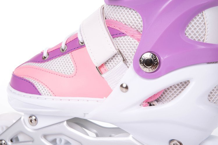 Buty wykonane są z półmiękkiego materiału, który dodatkowo wyposażono w system wentylacji, zapewniając świeżość i komfort nawet podczas intensywnego użytkowania. Trójstopniowe zapięcie (pas z klamrą, sznurowanie, pasek z rzepem) umożliwiają szybkie i łatwe dopasowanie buta, zapewniając stabilność i bezpieczeństwo podczas jazdy. Dzięki możliwości regulacji rozmiaru, buty łyżworolek mogą być idealnie dopasowane do każdej wielkości stopy, co zapewnia maksymalny komfort użytkowania.