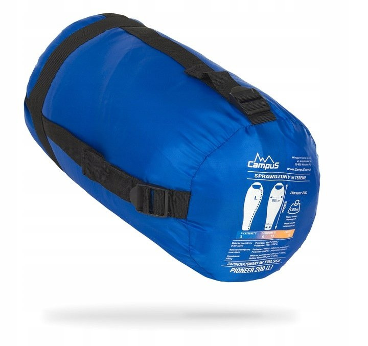 Śpiwór turystyczny to jeden z podstawowych akcesoriów, które powinny znaleźć się w ekwipunku podróżnym. Zapewni wydajny i komfortowy odpoczynek po wyczerpującym dniu. Śpiwór zawiera wypełnienie syntetyczne, jest odporny na wilgoć i posiada funkcje szybkoschnące. Zewnętrzna strona zrobiona z poliestru, posiada właściwości wodooporne. Śpiwór Campus wykazuje doskonałe funkcje izolacyjne dzięki zastosowaniu membrany Hollow Fiber. Materiał zatrzymuje ciepło wewnętrzne i świetnie odprowadza wilgoć. Wygodny śpiwór zapewni wygodny i spokojny sen podczas biwakowania. Pozwoli na regeneracje organizmu i ochroni przed przeziębieniem. Doskonale spełnia swoją role podczas każdej podróży. Całość można szybko i złożyć i schować w poręczny pokrowiec. Doskonale sprawdzi się na kempingu, na wycieczkach górskich czy podczas obozów sportowych.