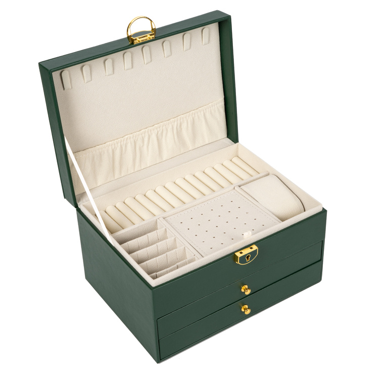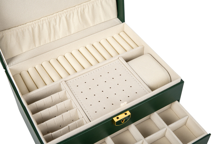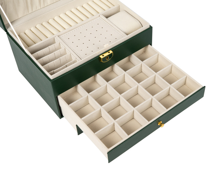 Niezależnie od tego, czy jesteś osobą dbającą o porządek czy też kochasz kolekcjonować biżuterię, to pudełko spełni Twoje wszystkie oczekiwania. Dzięki licznym przegródkom, szufladkom i haczykom, znajdziesz idealne miejsce dla każdego swojego drobiazgu. Dodatkowo, specjalny system pudełka zapewnia nie tylko ład i porządek, ale także chroni Twoje cenne skarby przed zarysowaniem bądź zaplątaniem.