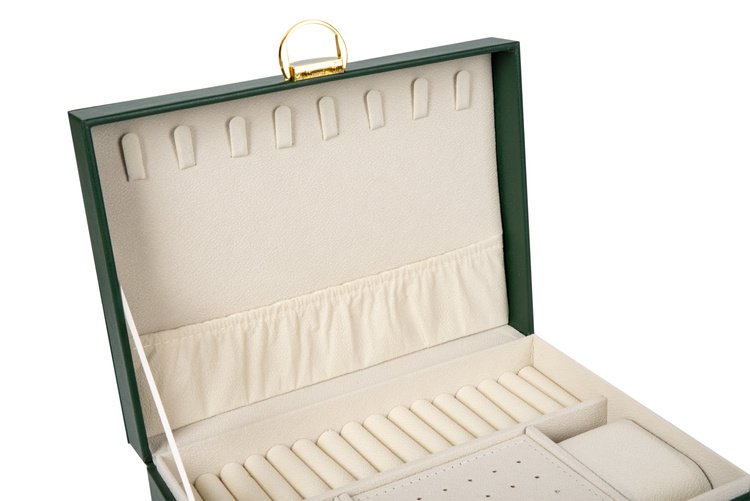 Całość została wykonana z wysokiej jakości ekologicznej skóry, która nie tylko doskonale chroni biżuterię, ale również prezentuje się niezwykle stylowo.