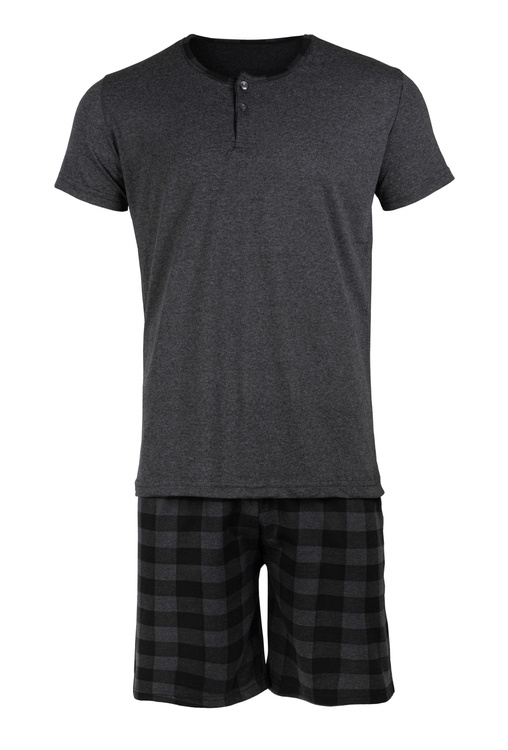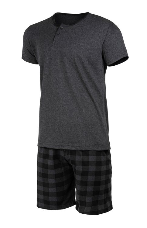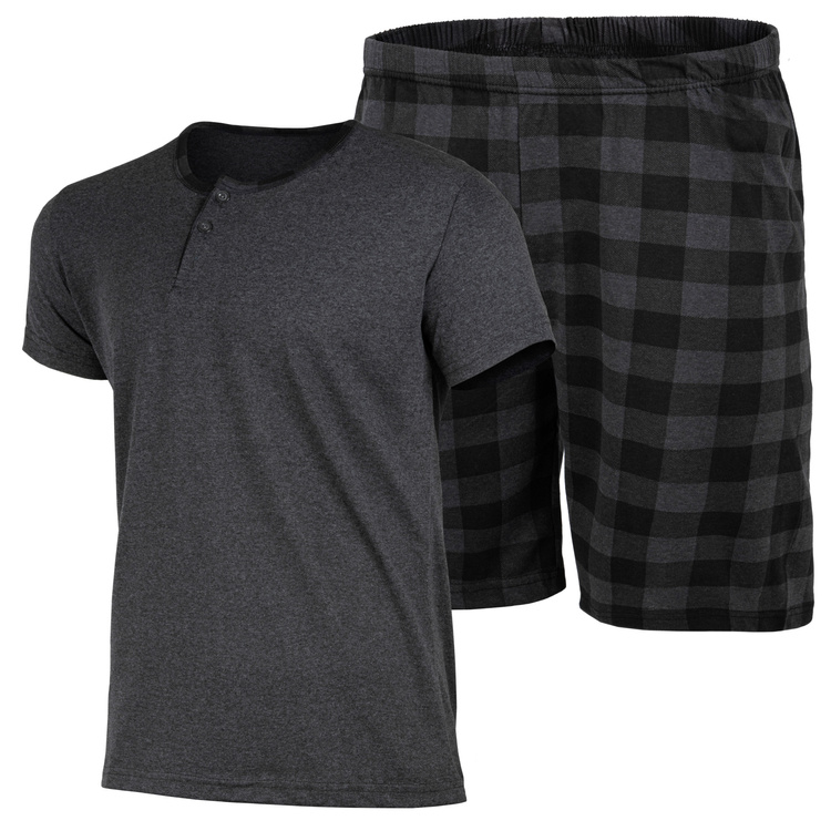 Koszulka z krótkim rękawem posiada okrągły dekolt z lamówką i praktycznymi guzikami, które dodają stylu i ułatwiają zakładanie. Spodenki o długości przed kolano, z elastyczną gumką w pasie, gwarantują wygodę i swobodę ruchów. Ponadczasowy wzór w kratkę na spodenkach to klasyczny wybór, który sprawdzi się w każdej sytuacji, łącząc elegancję z komfortem codziennego użytkowania.