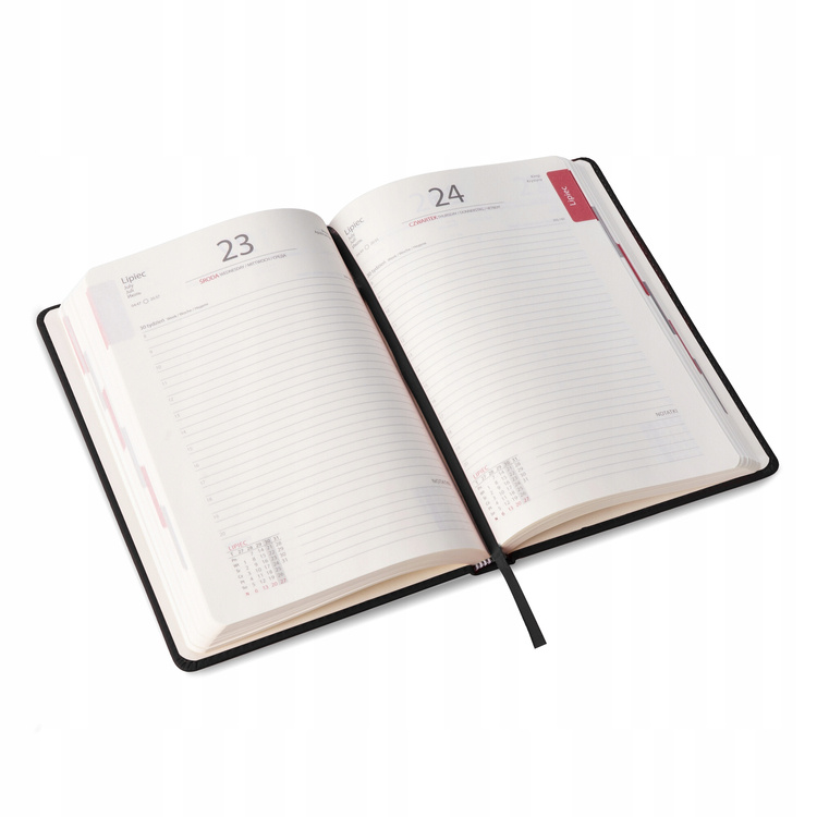 Dodatkowo kalendarz wyposażony jest we wstążkę, idealną do zaznaczania ważnych wydarzeń lub stron.