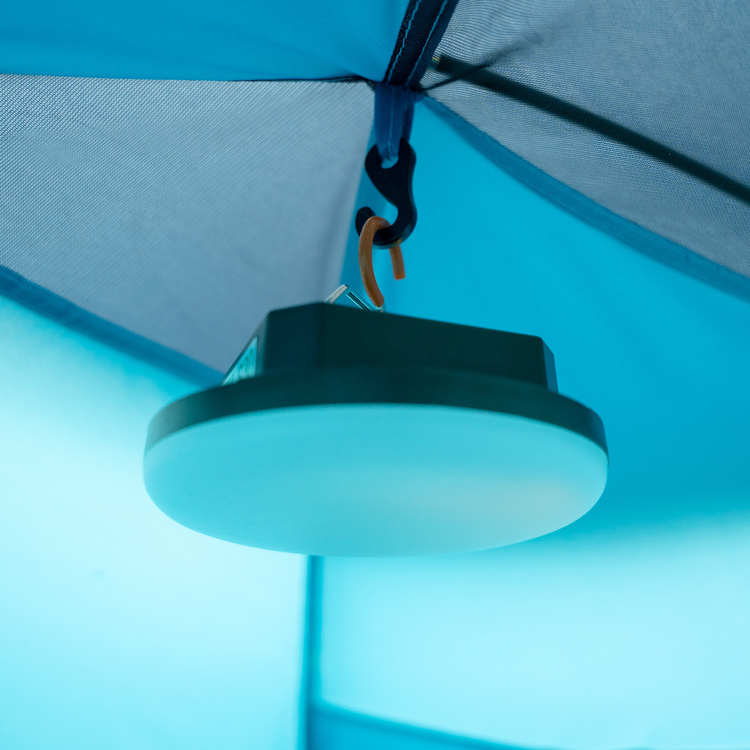 W środku namiotu znajduje się moskitiera chroniącą przed owadami, a także siatka wentylacyjna, która umożliwia cyrkulację powietrza i redukuje gromadzenie się wilgoci wewnątrz namiotu. Dodatkowym atutem są wewnętrzna kieszeń na drobiazgi oraz uchwyt na oświetlenie, które podnoszą komfort użytkowania. Całość została zaprojektowana z myślą o maksymalnie dwóch osobach, zapewniając wystarczająco dużo przestrzeni.