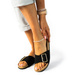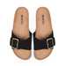 Paski wykonane z ecoskóry są nie tylko przyjemne w dotyku, ale także odporne na uszkodzenia oraz łatwe w czyszczeniu. Wewnętrzna wyściółka pasków zapewnia dodatkowy komfort i eliminuje ryzyko obtarć czy podrażnień skóry. Zapięcie na paskach umożliwia regulację dopasowania, co sprawia, że klapki są odpowiednie dla różnego rodzaju stóp.