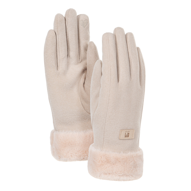 Beżowe rękawiczki damskie zimowe z futerkiem HRD005 – elegancja, ciepło i wygoda w jednym