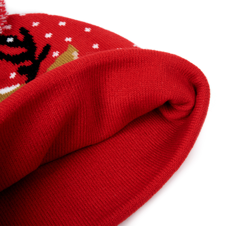 Ciepła czapka zimowa z reniferem i pomponem – świąteczny must-have!