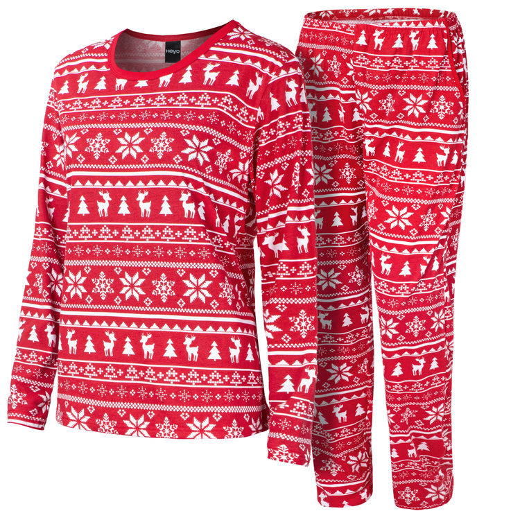 Damska piżama świąteczna – czerwona z wzorem norweskim