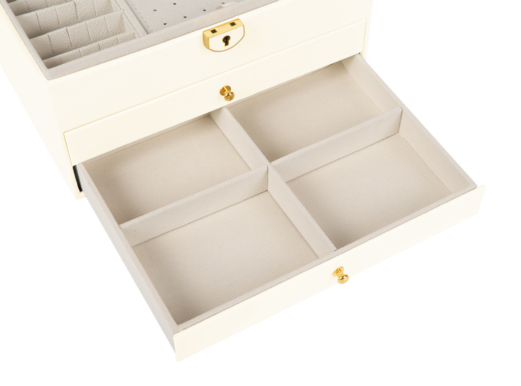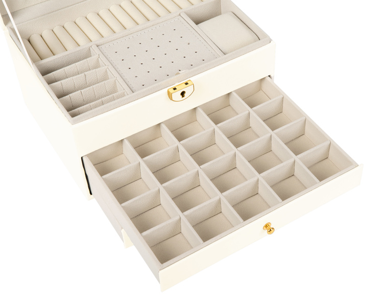 Niezależnie od tego, czy jesteś osobą dbającą o porządek czy też kochasz kolekcjonować biżuterię, to pudełko spełni Twoje wszystkie oczekiwania. Dzięki licznym przegródkom, szufladkom i haczykom, znajdziesz idealne miejsce dla każdego swojego drobiazgu. Dodatkowo, specjalny system pudełka zapewnia nie tylko ład i porządek, ale także chroni Twoje cenne skarby przed zarysowaniem bądź zaplątaniem.