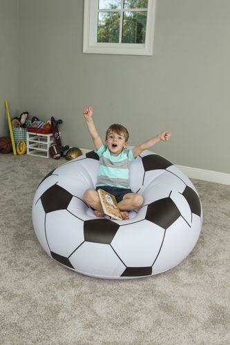 Bezszkieletowy fotel Bestway to oryginalny mebel, który z pewnością przypadnie do gustu każdemu miłośnikowi piłki nożnej. Niezależnie od wieku staniesz się jej miłośnikiem. Pufę można z powiedzeniem wykorzystać jako mebel w domu, idealny do oglądania meczy piłki nożnej, wprowadzi w futbolowy klimat i dostarczy jeszcze więcej emocji. Perfekcyjnie sprawdzi się także w ogrodzie na świeżym powietrzu. Cała konstrukcja wykonana z grubego PCV odpornego na drobne uszkodzenia i przetarcia, co sprawi że fotel przetrwa bezproblemowo kilka sezonów.