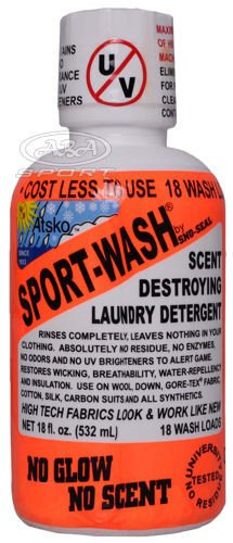 Wielofunkcyjny płyn do prania marki Atsko. Przeznaczony do takich tkanin jak: bawełna, wełna, jedwab, tkanin typu GORE TEX , pierza, Thinsulate, mikrowłókien, polietylenu, polipropylenu, nylonu-poliamidu, poliestru, acrylicu, tkanin poddanych impregnacji DWR. Użycie płynu powoduje odnowienie wydajności materiału ale także usuwa wszelkie nieprzyjemne zapachy oraz trudne do usunięcia plamy z trawy, krwi, czy błota. Pozytywnie wpływa również na wodoodporność oraz oddchalność materiału. Środek jest całkowicie bezwonny.