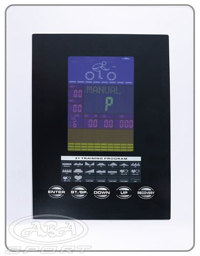 - Funkcje komputera: czas, dystans, prędkość, kalorie, puls, recovery, scan, RPM, HRC, WATT, body fat