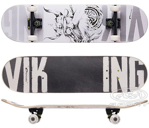 Deskorolka Viking to propozycja dla początkujących skate’a. Zastosowane parametry w postaci deski z klonu kanadyjskiego, kauczukowe kółka oraz łożyska klasy ABEC7 trafią wprost w gusta miłośnika skatingu. Deskorolka marki Spokey wyróżnia się solidnym wykonaniem, dzięki czemu jej eksploatacja będzie długa i bezproblemowa. Dla wysokiego komfortu jazdy ale także bezpieczeństwa cześć wierzchnia została wykonana z antypoślizgowej powłoki - sand spray.