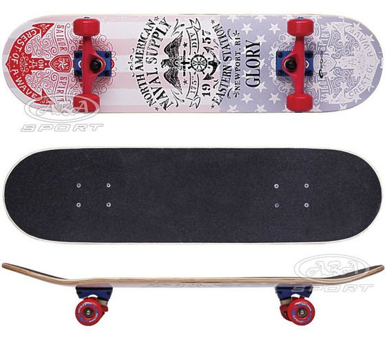 Deskorolka Glory to propozycja dla początkujących użytkowników. Wykonana z wysokiej klasy deski składającej się z dziewięciu warstw klonu kanadyjskiego. Deskorolka doskonale sprawdzi się podczas wykonywanie podstawowych trików i ewolucji z wykorzystaniem miejskiej infrastruktury. Użyte parametry techniczne takie jak kauczukowe kółka oraz łożyska klasy ABEC3 gwarantują wysoki komfort jazdy. Antypoślizgowa taśma odpowiada za stabilną i bezpieczną jazdę.