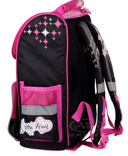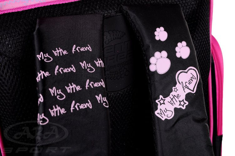 Tornister szkolny My Little Friend został zaprojektowany specjalnie z myślą o potrzebach najmłodszych dzieci szkolnych. Stosunkowo niska waga oraz konstrukcja umożliwiająca wygodne przenoszenie niezbędnego bagażu szkolnego- to cechy jakie wyróżniają tornister. Komora główna plecaka została wyposażona w dwie przegrody oraz dodatkową kieszeń na zamek. Dno plecaka posiada usztywnianą wkładkę, która uchroni przed szybkim przetarciem. Usztywniane plecy oraz profilowane szelki sprawią, że dziecko zachowa odpowiednią postawę nawet podczas sporego obciążenia. Zamki plecaka dla wygodnego otwierania oraz zamykania posiadają gumowe uchwyty w kształcie łapek. Tornister dla maksymalnego bezpieczeństwa użytkowników został wyposażony w elementy odblaskowe. Wyjątkowa grafika w postaci pieska York z pewnością przypadnie do gustu niejednej dziewczynce.